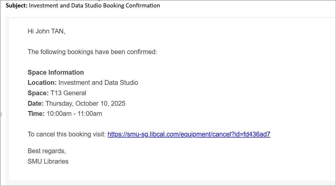 To cancel your booking, please open your booking confirmation email and scroll to the bottom. You’ll find a cancellation link there. For reference, see the image attached below.
